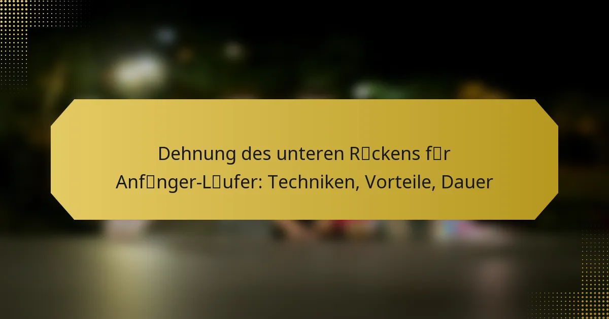 Die Integration effektiver Dehnübungen für den unteren Rücken in Ihre Routine ist für Anfängerläufer unerlässlich, da sie die Flexibilität erhöhen, Spannungen reduzieren und die Gesamtleistung verbessern. Diese Dehnübungen lindern nicht nur Beschwerden, sondern spielen auch eine entscheidende Rolle bei der Verletzungsprävention, was ein angenehmeres Lauferlebnis ermöglicht. Um die Vorteile zu maximieren, sollten Sie jede Dehnung 15 bis 30 Sekunden halten, um sicherzustellen, dass sich Ihre Muskeln sicher entspannen und verlängern.